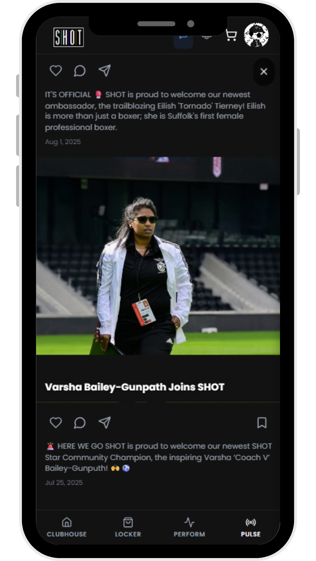 Follow your club, watch live scores, listen to the podcast, grab the merch, and join the community. SHOT Clubhouse isn't just for coaches and athletes — it's for everyone who cares about sport.